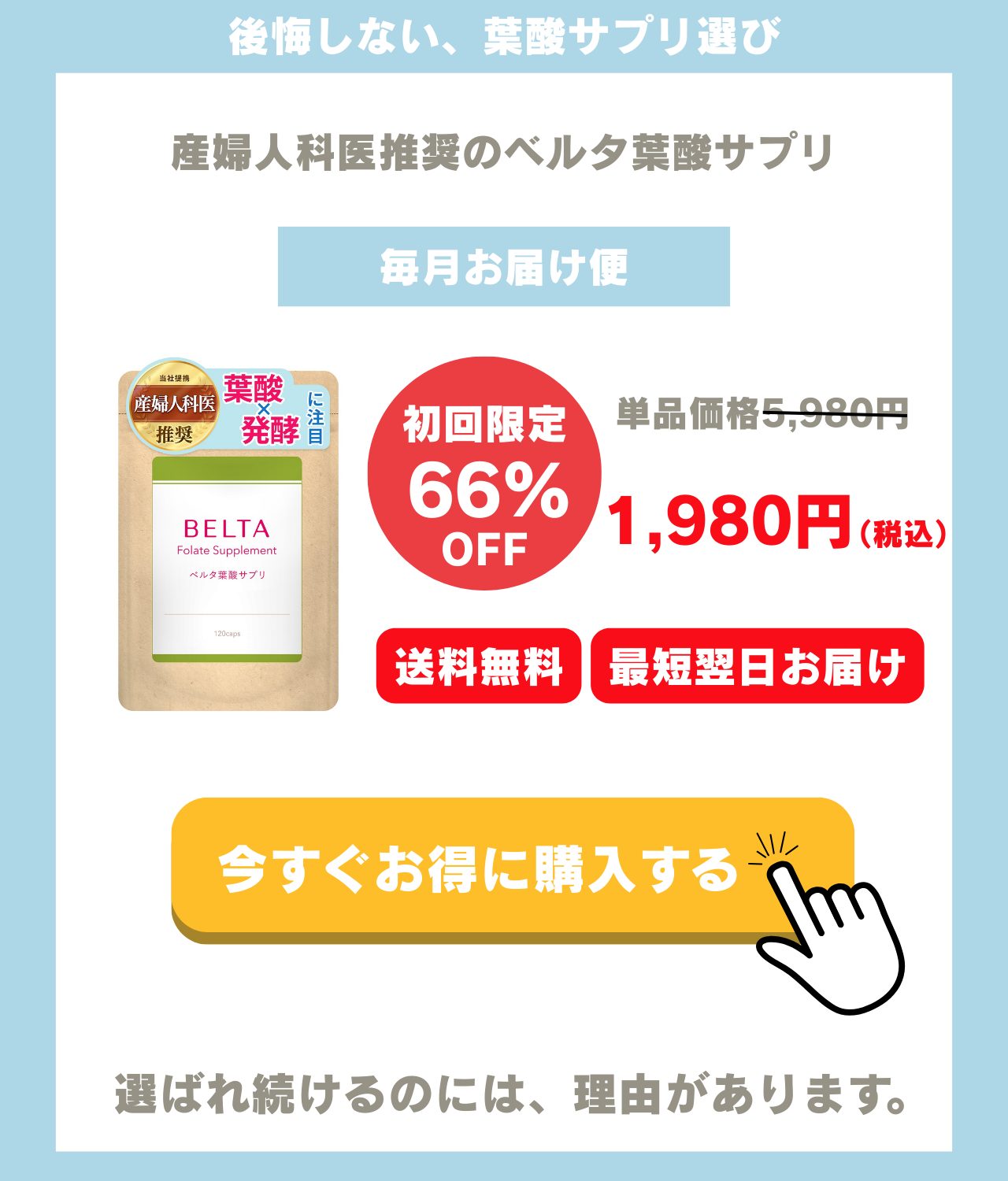 この記事でご紹介した中で、特に安全性・成分バランス・信頼性の観点から、私が**最初の一つとしておすすめしたいのは「ベルタ葉酸サプリ」**です。