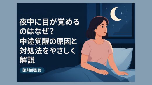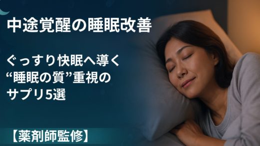 夜中に起きてしまう中途覚醒を、薬剤師監修で科学的にケア。原因別の成分選び、機能性表示・含有量の見方、飲むタイミングと注意点まで、睡眠の質を高める方法を解説。